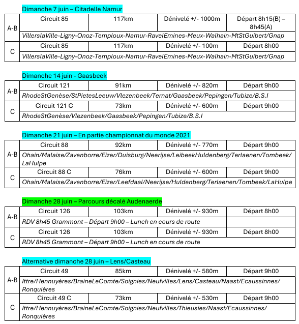 Groupe D : Pas de programme prévu - Tous les dimanches et jours fériés, circuit spécifique de 50 km - Départ 10h00 gare de Lillois